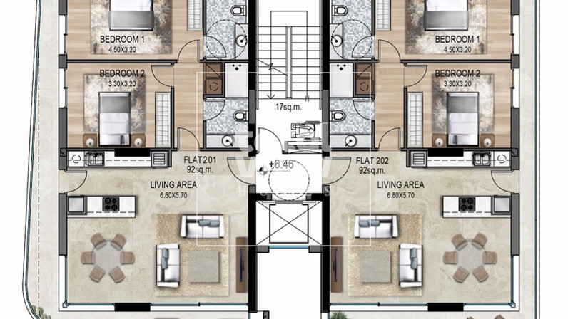 The project consists of six high-quality two-bedroom apartments, designed with north–south orientation for optimal natural light and ventilation. Each apartment features a garden-style terrace and a circular balcony on three sides, creating a sense of space, privacy, and luxury.